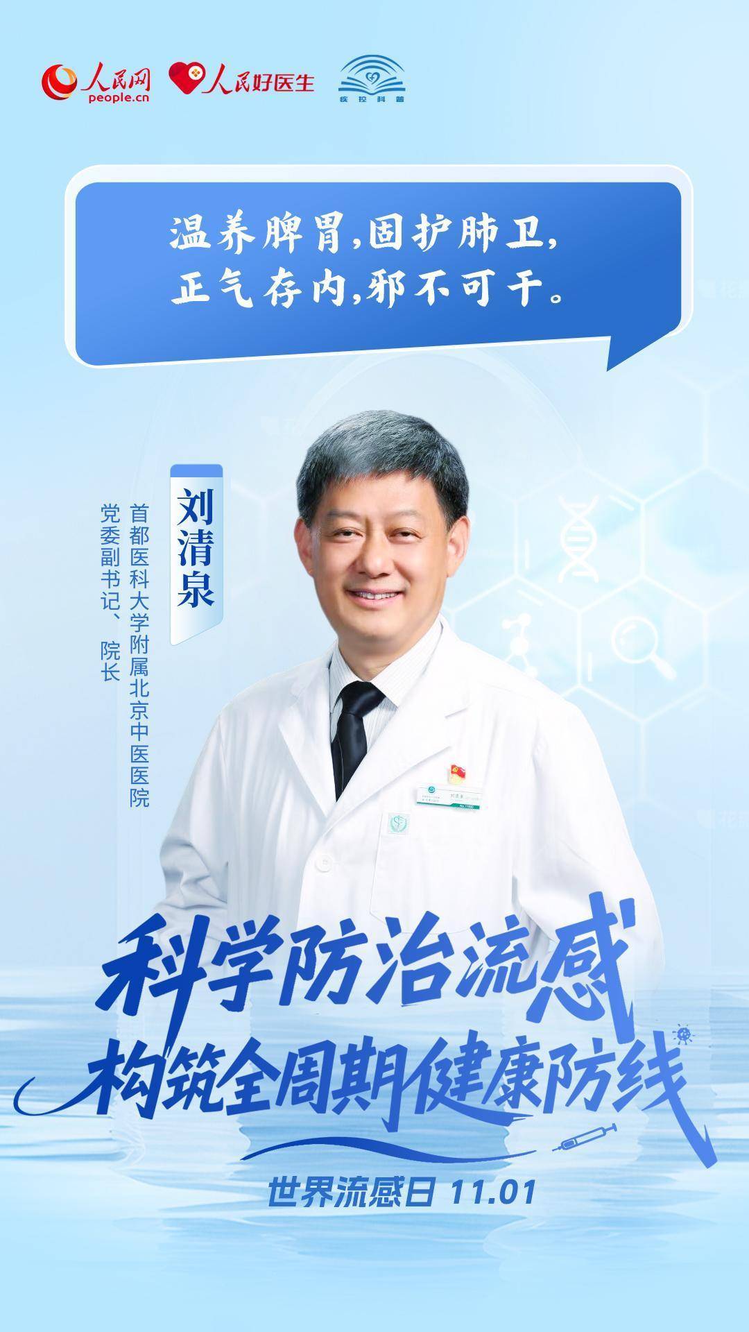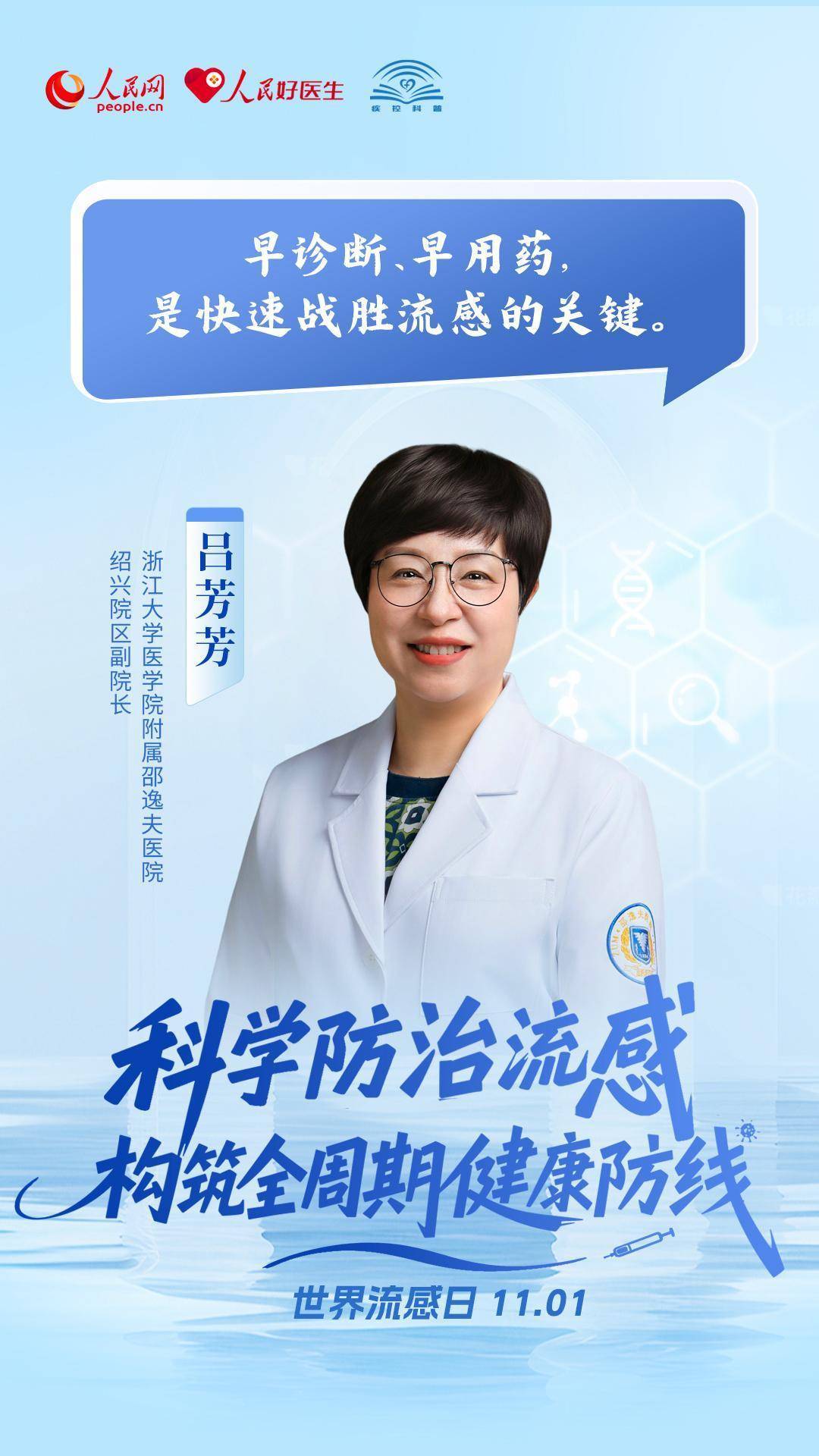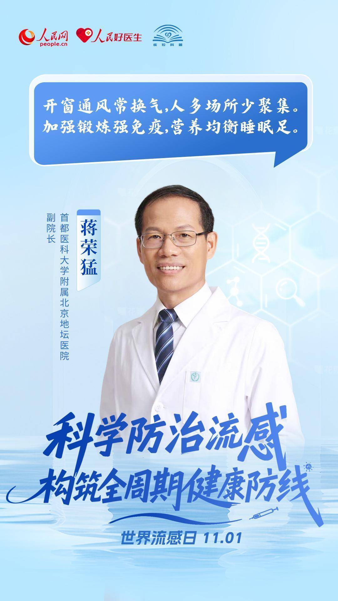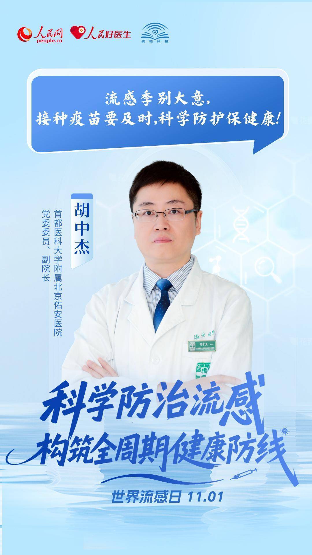 秋冬交替,流感高发季悄然而至。为提高公众对流感的防范意识和防护能力,人民网、人民好医生客户端联合中国疾病预防控制中心,特别推出流感系列科普策划,详尽解答有关流感的热点问题。11月1日是世界流感日,多位呼吸和感染领域的专家在此分别对流感的“防、治、康”三方面提出实用的健康建议,帮助大众科学地认识和应对流感。