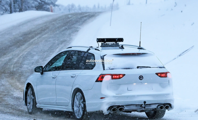 从谍照来看,新款大众高尔夫R旅行版在外观方面,将采用最新一代家族式设计风格,车头突出一些扁平化的设计元素,大众LOGO两侧的LED灯带贯穿至大灯组,亮起后有着不错的视觉效果,格栅左侧还提供R字母标识,前包围还经过一些运动化处理,提升了车辆的运动氛围。